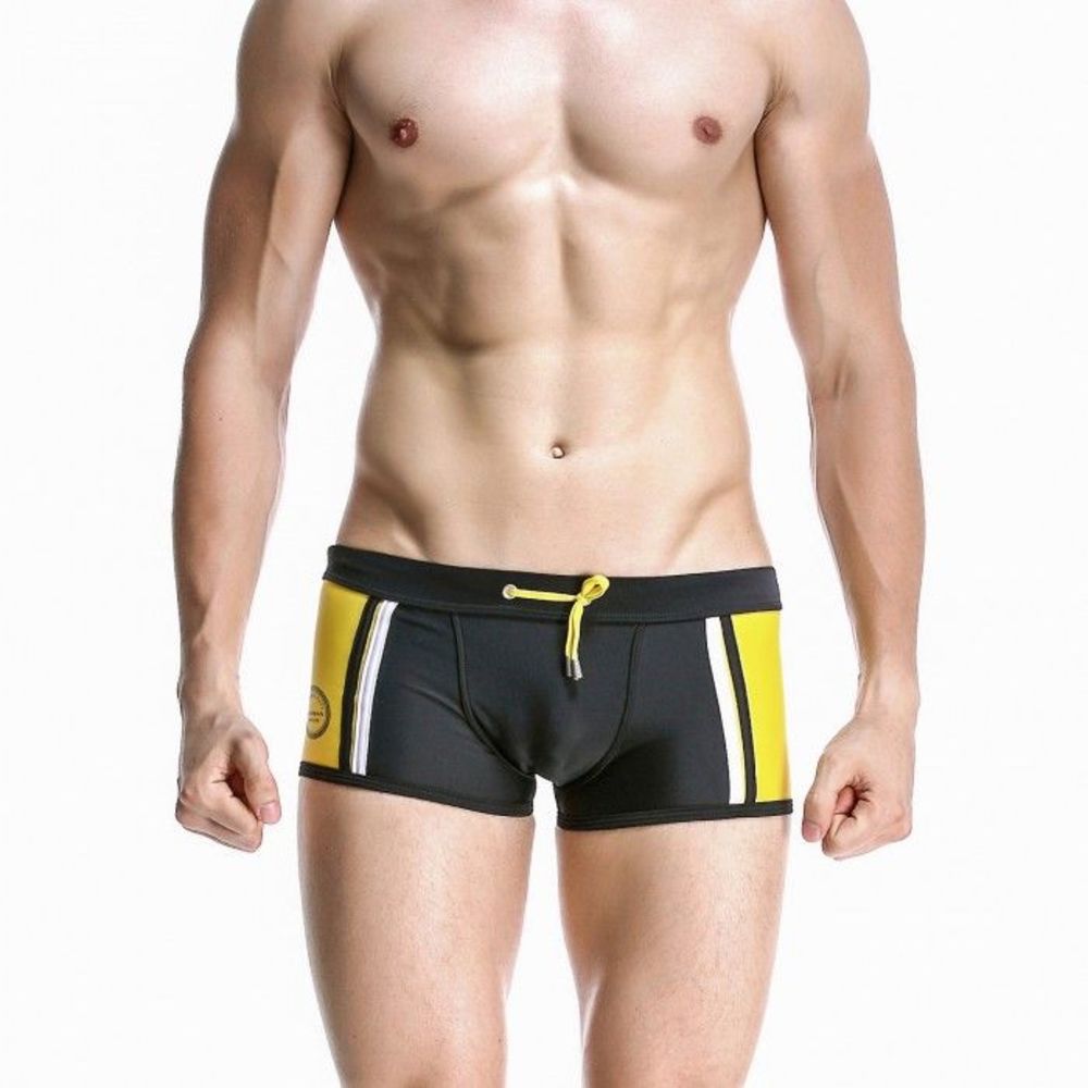 Фото - Стильные мужские плавки-боксеры Aqua Speed DARIO черно-серые с желтым - Men box