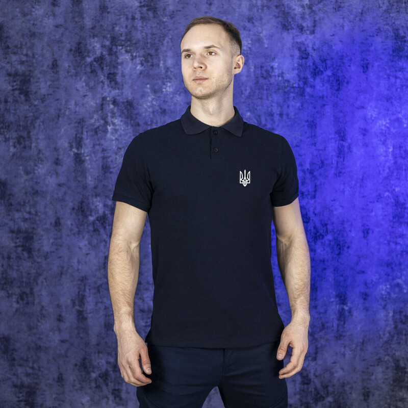 Фото - Поло Pobedov Loft темно-синее с белым гербом Украины - Men box