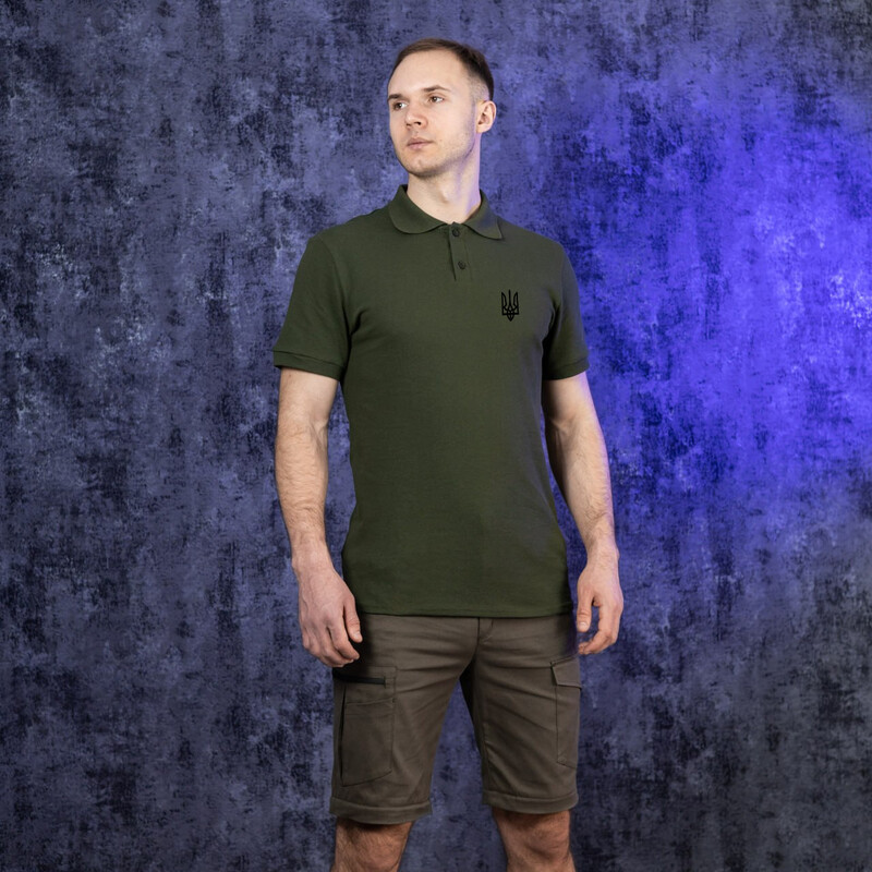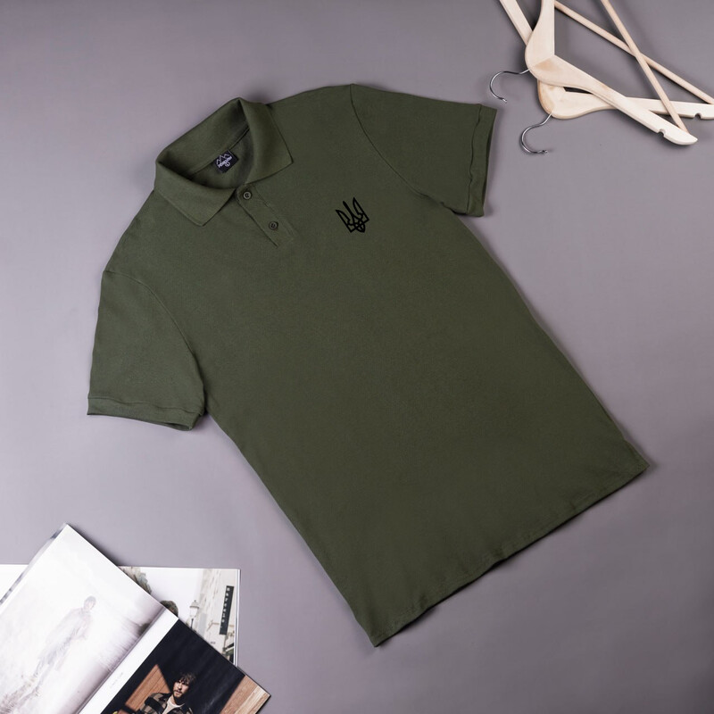 Фото - Поло Pobedov Loft цвета хаки с черным гербом Украины - Men box