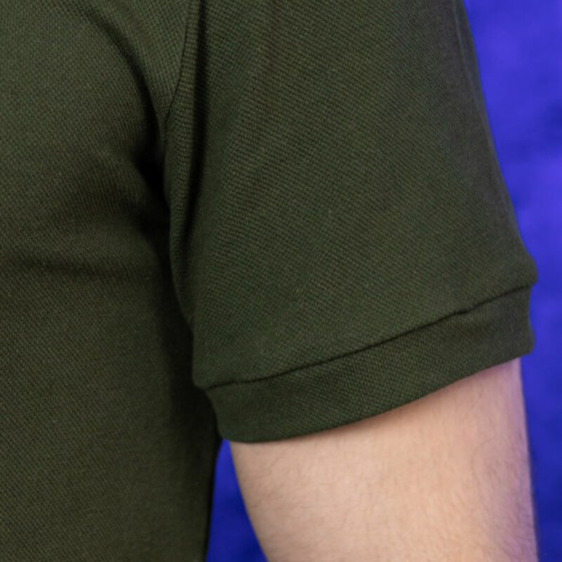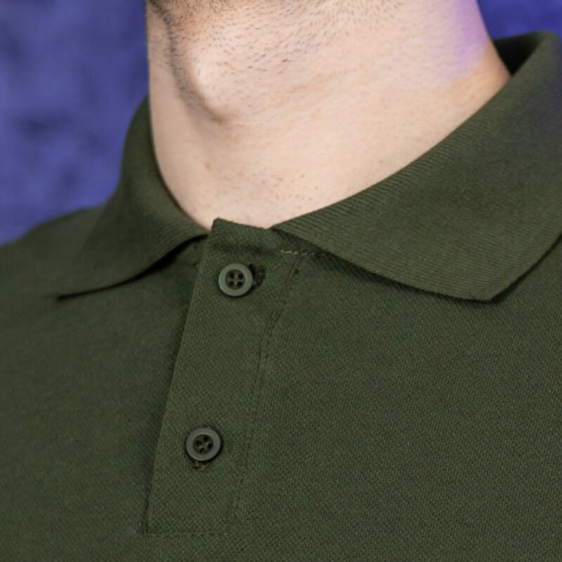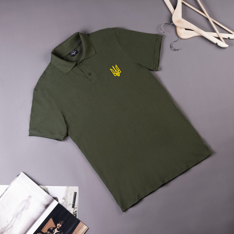 Материал: трикотаж лакоста. Отложной воротник. Нагрудная планка на двух пуговицах. Логотип: наклейка "Герб Украины"