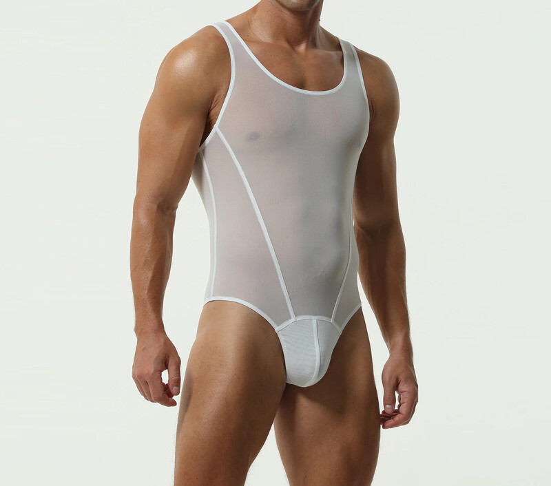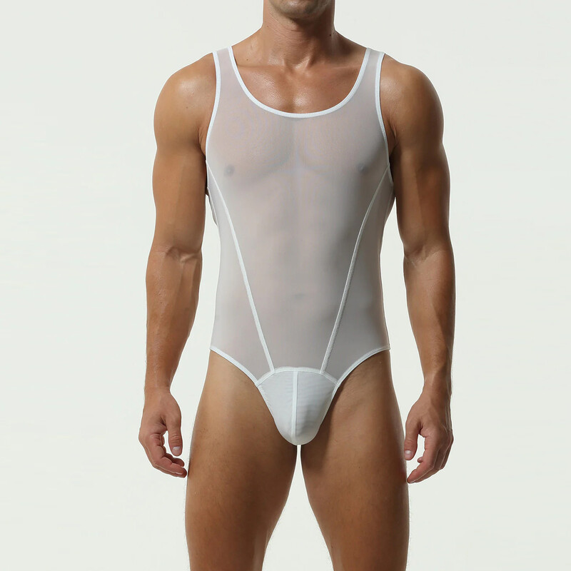• Полупрозрачное мужское боди Tauwell белое со стрингами