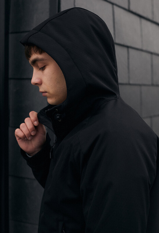 - капюшон регулюється шнуром із пластиковими фіксаторами;