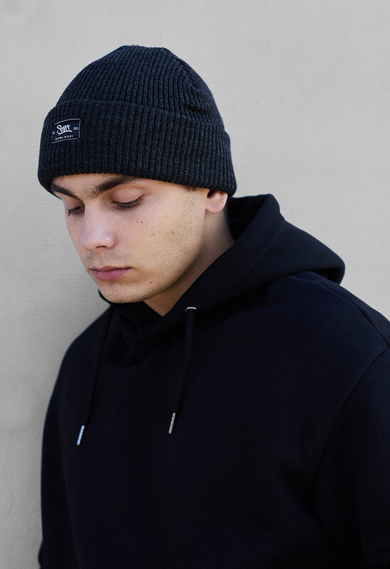 Шапка із щільної в'язки в базовій посадці стильно гармонує з різними образами та надійно захищає від вітру.