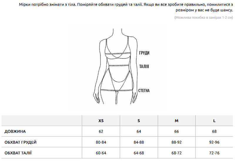 Согласно Постановления Кабинета Министров Украины от 19 марта 1994 г. №172 "Перечень товаров, не подлежащих обмену (возврату)" нательное белье и чулочно-носочные изделия возврату и обмену не подлежит. Просим это учитывать при покупке.
