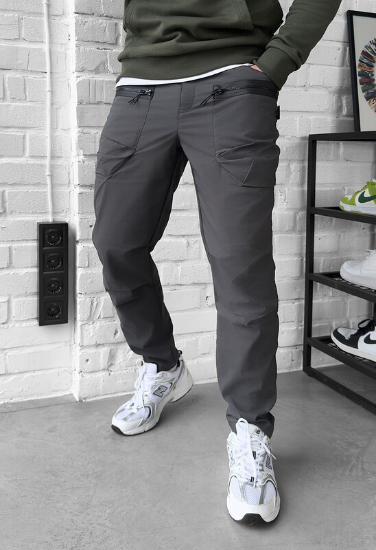 Устойчивая к осадкам и влаге ткань прекрасно выдерживает любые нагрузки и не сковывает движений. Удобный пояс на резинке по бокам хорошо фиксируется, а карманы на тракторных молниях создают эксклюзивный лук.