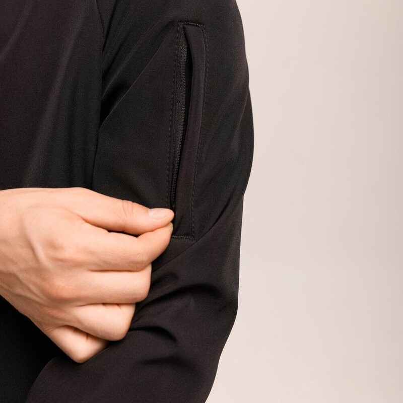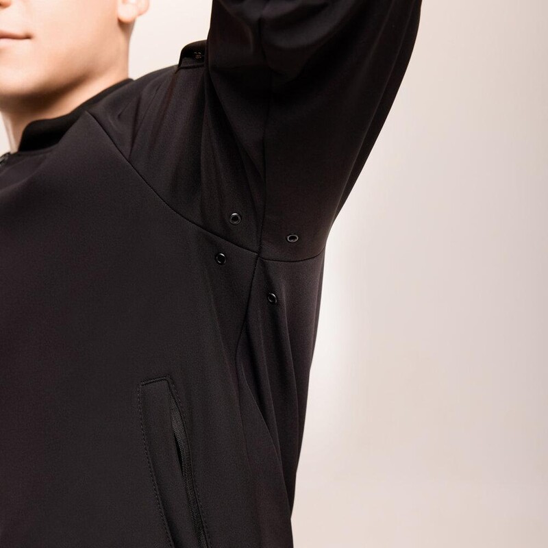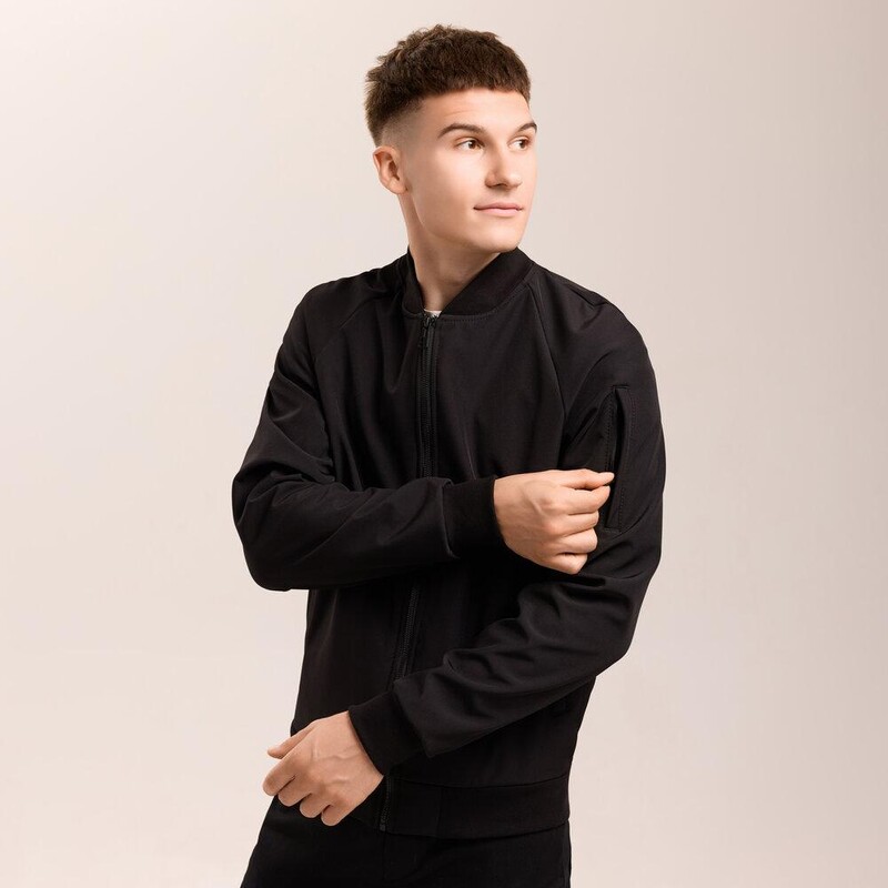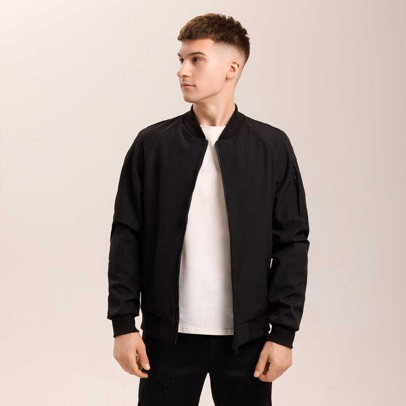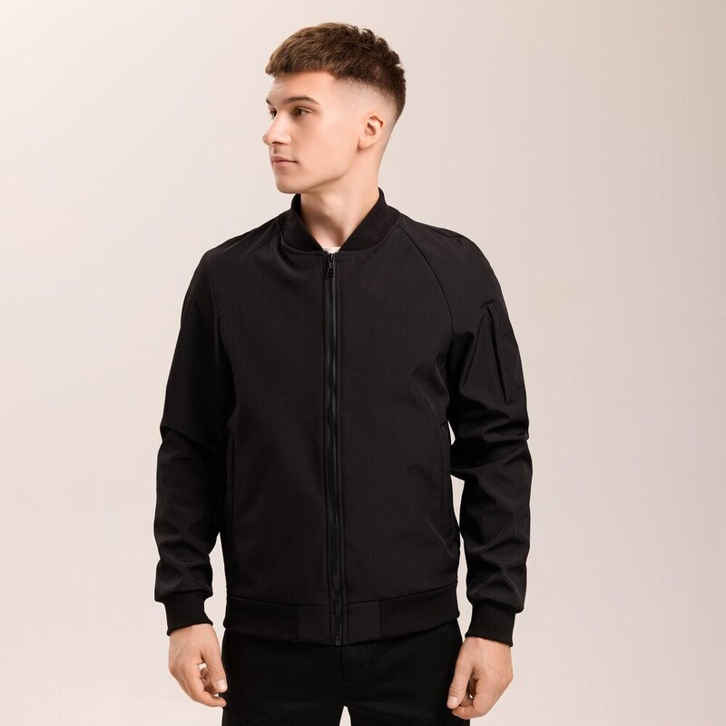 Классический чёрный бомбер от украинского бренда Pobedov – незаменимый элемент вашего демисезонного гардероба. Модель выполнена из технологичного материала softshell, который эффективно защищает от ветра и лёгкой влаги, делая куртку идеальной для весны и осени. Бомбер имеет удобный крой реглан и застёгивается на надёжную молнию. Комфорт и фиксацию обеспечивает воротник-стойка, а также трикотажная резинка на манжетах и по низу изделия. Для практичности предусмотрено два боковых кармана на молниях и дополнительный функциональный карман на рукаве. Под мышками расположены люверсы для оптимальной вентиляции. Это идеальный выбор для мужчин, которые ценят городской повседневный стиль и функциональность.
