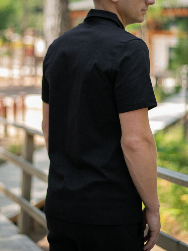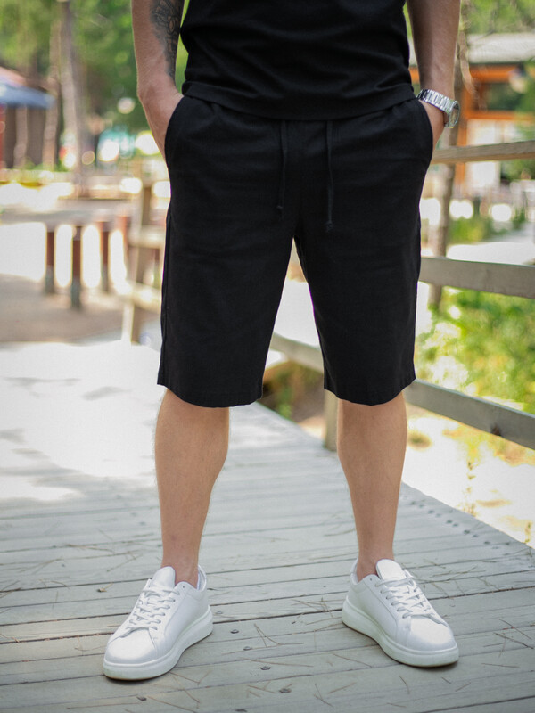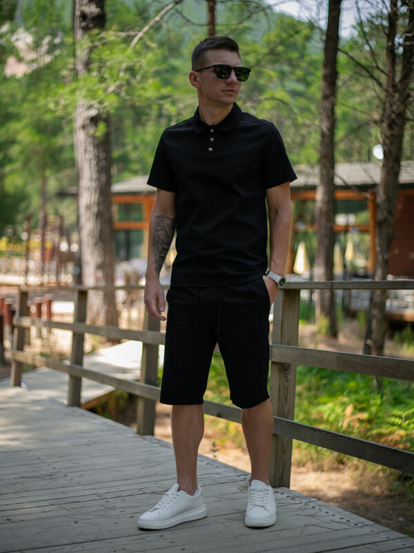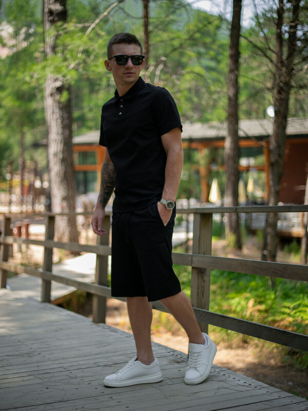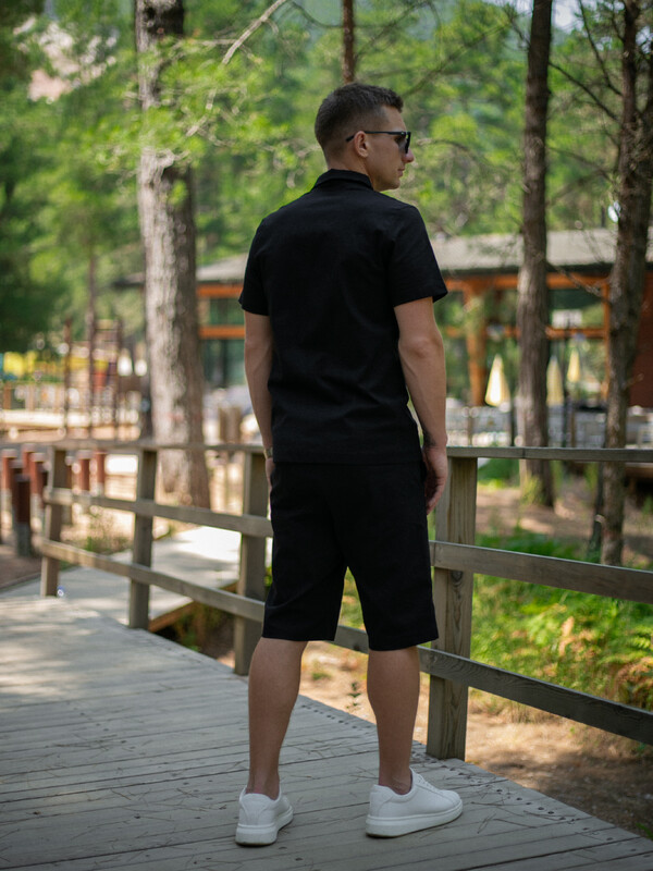 Мужской костюм Intruder в классическом чёрном цвете — это выбор для тех, кто ценит универсальность и стиль. Льняная футболка-поло с воротником на трёх кнопках подчеркивает аккуратный и сдержанный образ. Прямой крой обеспечивает комфорт и свободу движений в течение всего дня. Шорты с резинкой и регулирующим шнурком плотно и удобно сидят на талии. Два прорезных кармана делают комплект практичным. Этот костюм станет надежным спутником в городе, на отдыхе или деловой встрече.