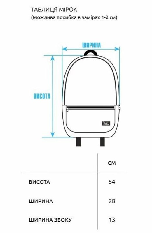 - размер: высота 54 см, ширина 28 см, ширина сбоку 13 см;