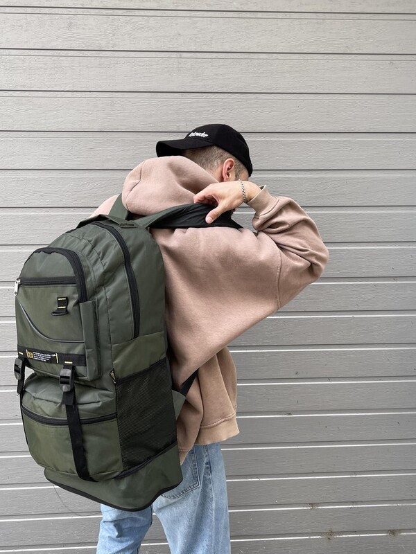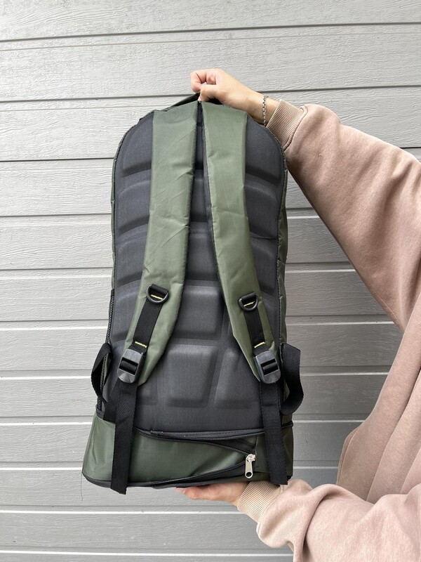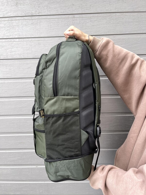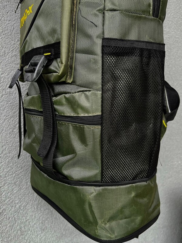 Рюкзак имеет большое основное отделение на сдвоенной змейке. Внутренних карманов нет. 3 дополнительных кармана на змейках и 1 кармашек с боку из сетки. Нижняя змейка увеличивает в глубину основное отделение на 9 см.
