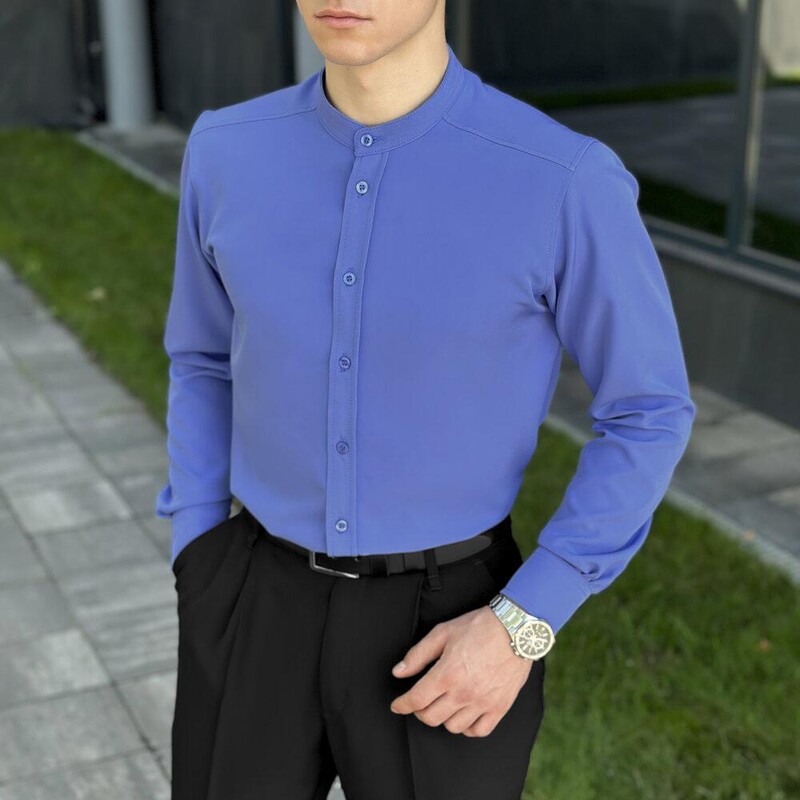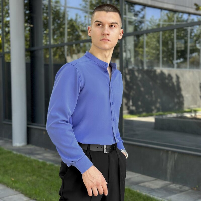 Голубая рубашка Pobedov Legend — свежая и лёгкая альтернатива классическим цветам. Она придаёт образу мягкости, открытости и подчеркивает индивидуальность. Костюмная ткань с сатиновым эффектом добавляет благородный блеск, а прямой крой делает посадку свободной и комфортной. Воротник-стойка и аккуратная пуговичная застёжка подчеркивают внимание к деталям. Светло-голубой цвет ассоциируется с чистотой, спокойствием и лёгкостью — идеальный вариант на весну и осень, особенно в сочетании с джинсами, лляными или светлыми брюками. В комплекте есть запасная пуговица, что делает рубашку не только стильной, но и практичной.
