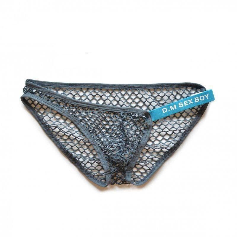 Эротические трусы-брифы D.M. в современном сером цвете с яркой синей резинкой — это смелый и стильный выбор. Благодаря крупной сетчатой ткани, изготовленной из высококачественной смеси полиэстера (90%) и спандекса (10%), они абсолютно прозрачны, что создает интригующий и эротический образ. Синяя резинка добавляет образу свежести, а серый оттенок придает сдержанности, сочетаясь с откровенностью сетки. Заниженная посадка подчеркивает рельеф тела. Эта модель уже является сексуальной благодаря своей уникальной текстуре и откровенности. Она идеальна для тех, кто ценит оригинальность и хочет добавить в свой гардероб вещь, которая одновременно является и элегантной, и дерзкой.