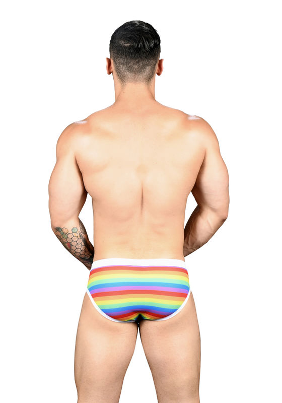 Хочешь быть самым заметным на пляже? Эти стильные Pride Stripe от Andrew Christian в традиционных радужных цветах Прайда для тех, кто исповедует свободу и горд этим. Заниженная посадка и мини-фасон максимально открывают тело, обеспечивая сексуальный вид. Регулируемая завязка на поясе позволяет идеально подогнать изделие под свое тело. Анатомический крой повышенной комфортности полностью исключает прилипание, сдавливание, перекосы, потоотделение и натирания. Плавки выпущены ограниченным тиражом, так что не упусти свой шанс стать единственным и неповторимым.