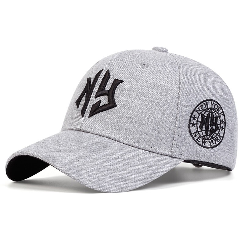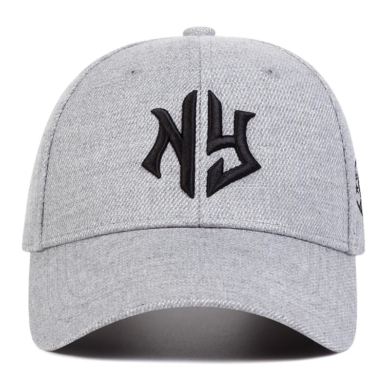 • Серая бейсболка для мужчин от Narason с черной вышивкой NY