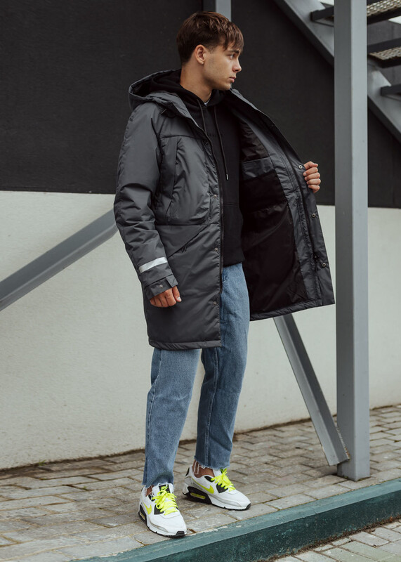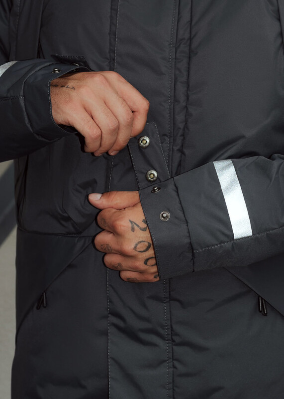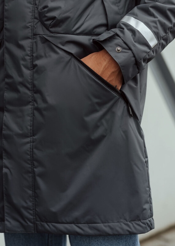 Демисезонная парка из лёгкой, но прочной ткани защитит от ветра и мелкого дождя, а светоотражающие элементы на рукавах и спине выделят тебя в темное время суток. Удобные карманы на молнии помогут комфортно устроить руки и надёжно спрятать личные вещи.