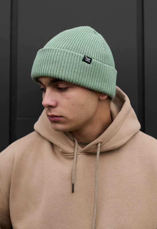 Шапка із щільної в'язки доповнена біркою з логотипом бренду. Виріб чудово захищає від холоду та доповнює образ.