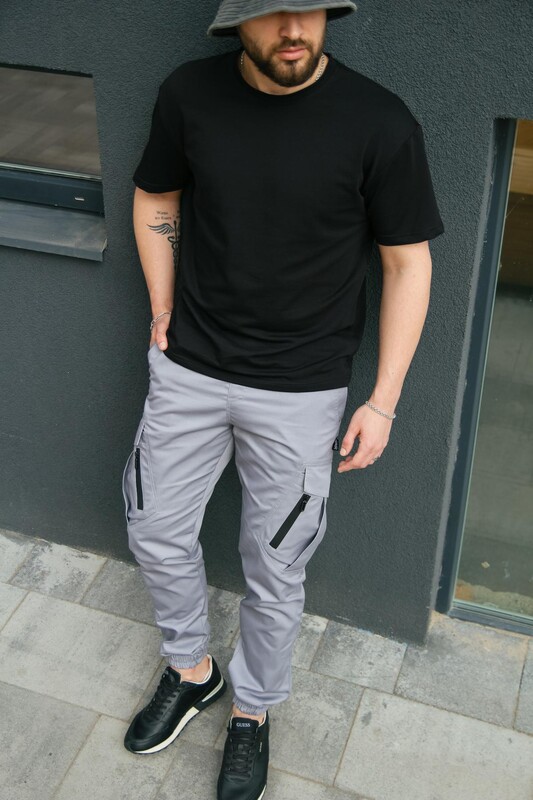 • Штаны карго Intruder Storm серые с резинками внизу