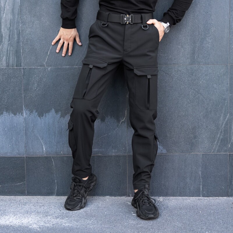 Штаны изготовлены из высококачественного софтшела, что делает их чрезвычайно крепкими и удобными для ношения в условиях милитари стиля. Основная особенность – это девять функциональных карманов. Пояс штанов застегивается на пуговицу и молнию, а такж