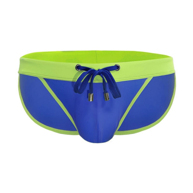 • Синие мужские плавки от бренда UXH с салатовым поясом
