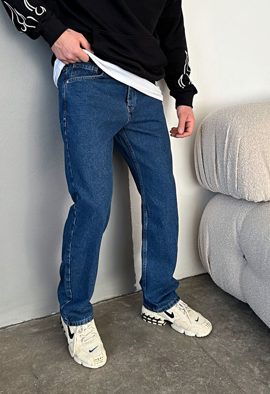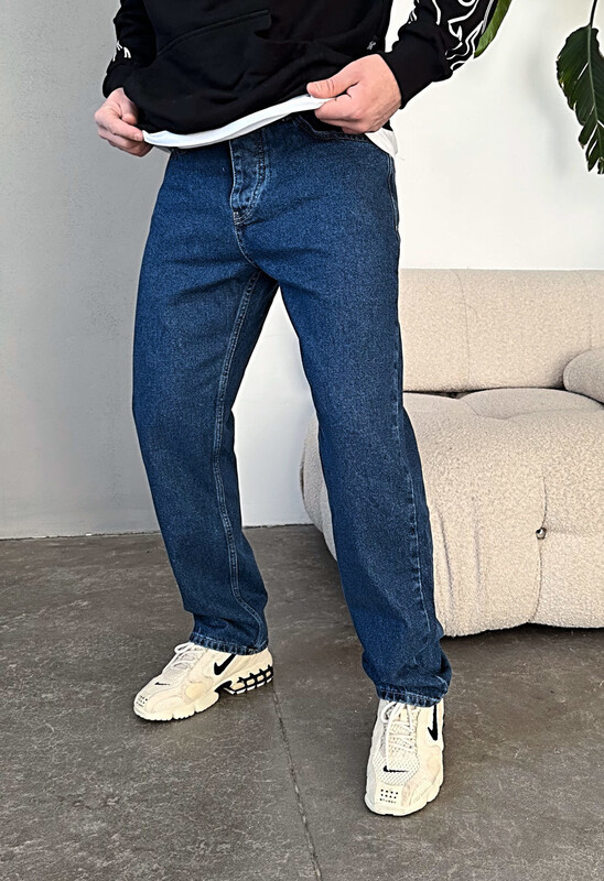 Мішкуваті джинси з ефектом приспущеності виготовлені з преміального деніму. Класичне забарвлення забезпечить стильний street чи casual образ.