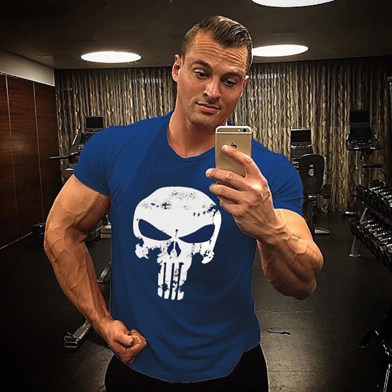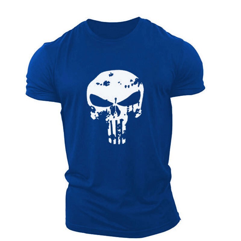 Фото - Синяя футболка для фитнеса Sport Line с белым черепом - Men box