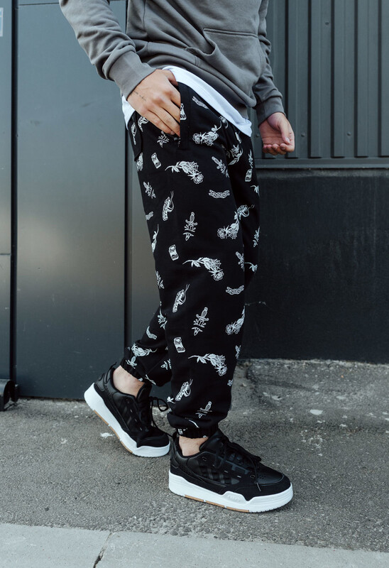 Благодаря ярким принтам на этой новой модели спортивных штанов ты выделишься в любой тусовке, а удобный крой не будет сковывать движения.