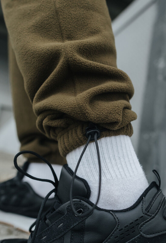 Тёплые спортивные штаны из микрофлиса гарантируют комфорт в холодную погоду. Эластичная стяжка с фиксатором на поясе обеспечит удобную посадку, а дополнительный накладной карман на застёжке-липучке — место для личных вещей.
