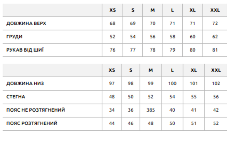 - низ с манжетами из эластичной резинки.