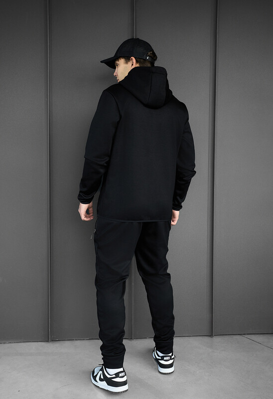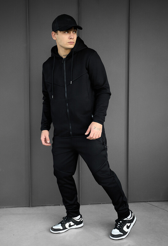 Практичний спортивний костюм з кишенями для надійного зберігання особистих дрібниць під час прогулянок та тренувань. Низ толстовки та манжети добре прилягають до тіла завдяки еластичній резинці, тим самим вдало підкреслюючи фігуру. А висока горловина з капюшоном надійно захищають від вітру.