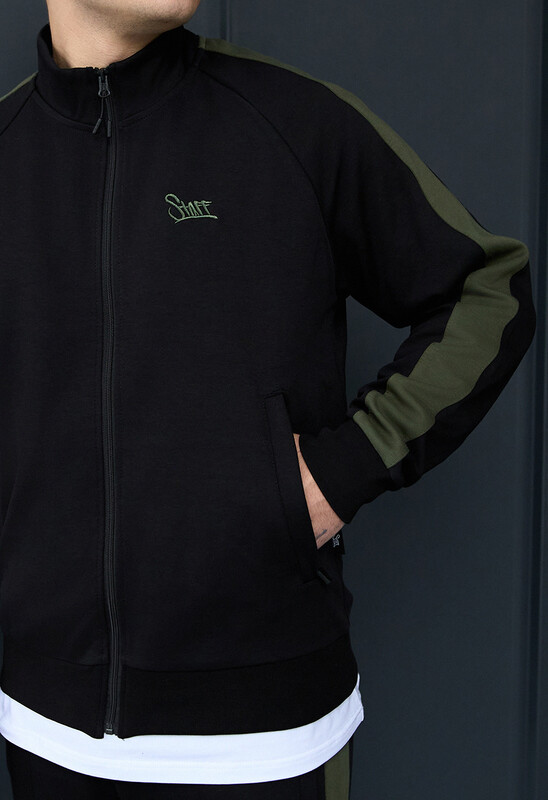 Спортивный костюм классического кроя с карманами на молнии и высоким воротником подарит ощущение комфорта в любой ситуации.