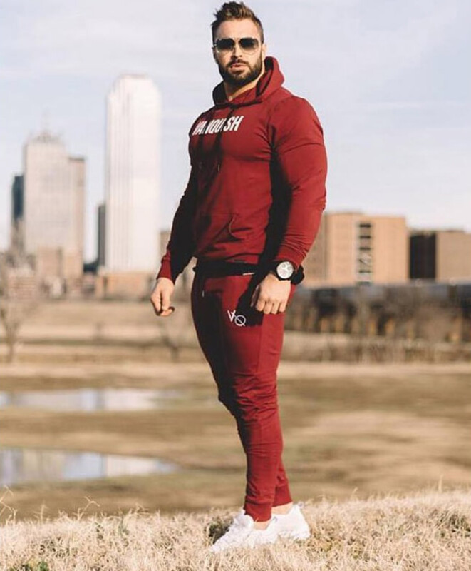Изготовленный из эластичной ткани универсальный мужской спортивный костюм идеально подходит для спорта и отдыха, обеспечивая комфорт и свободу движений.