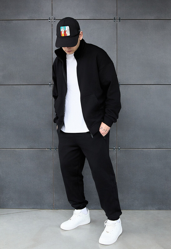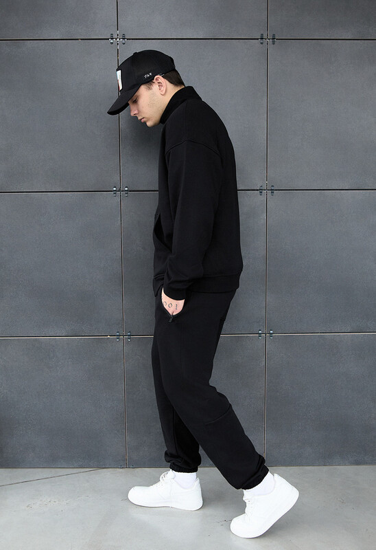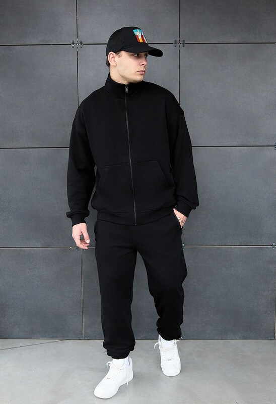 Спортивный костюм в посадке oversize гарантирует удобство в делах на протяжении всего дня. Толстовка на молнии с высоким воротником защищает от ветра, а брюки с манжетами на резинке - гарантируют стильную и удобную посадку.