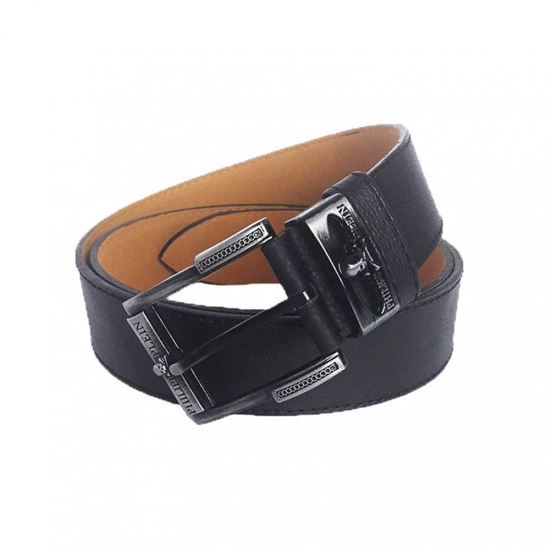 Фото - Повседневный кожаный ремень от бренда Leros черного цвета - Men box
