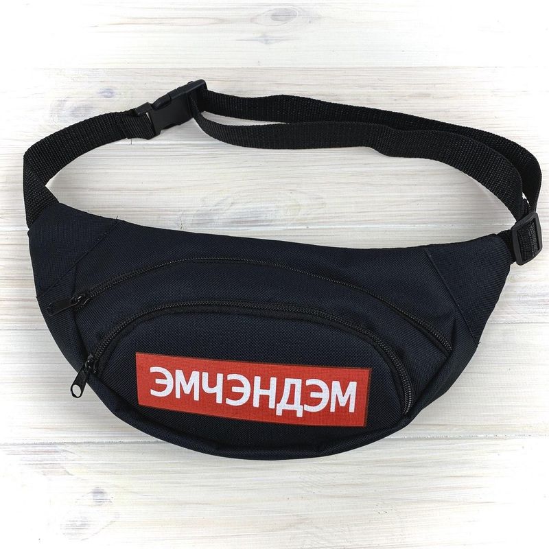 • Сумка-бананка Intruder черная c надписью "ЭмчЭндЭм"