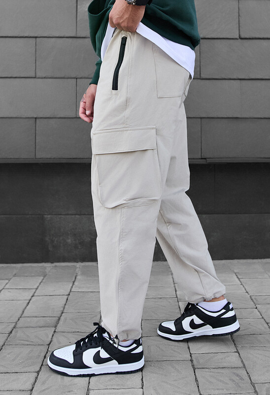 Модель карго доповнена щільною резинкою та регульованим шнурком на талії для комфортної посадки. А зручні стяжки на внутрішній стороні дозволяють самостійно визначати ширину штанин, створюючи свій ексклюзивний лук. Модель доповнює об’ємна вишивка під планкою бокової кишені.