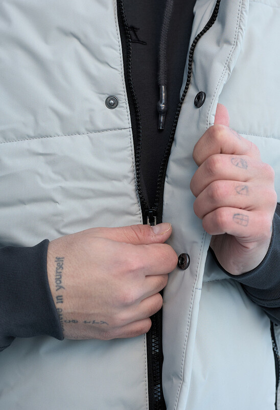 - тракторный замок-молния снаружи прикрыт ветрозащитной планкой на кнопках;