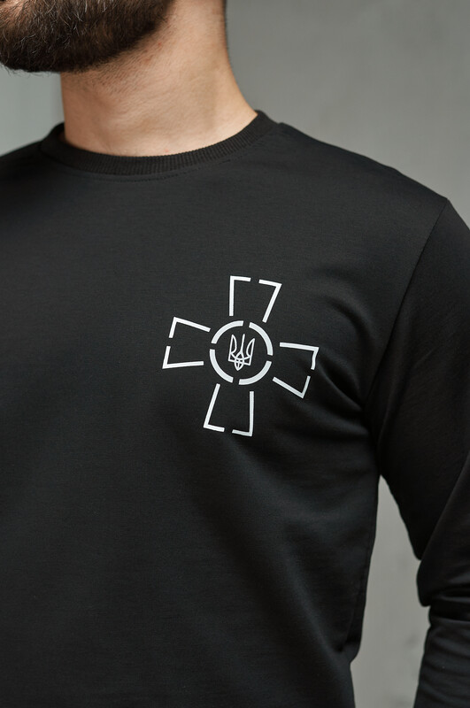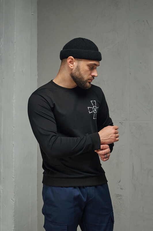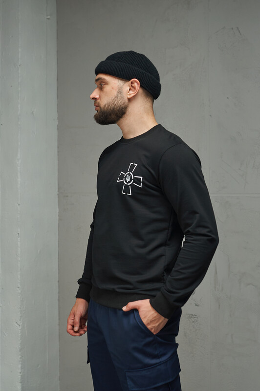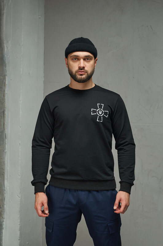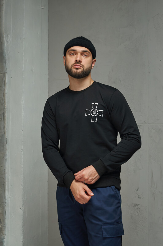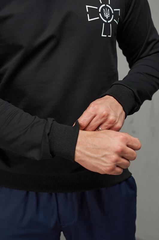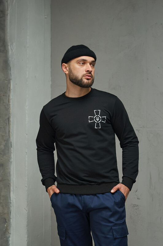 Фото - Свитшот Pobedov черный с синим гербом Украины (вышивка) - Men box