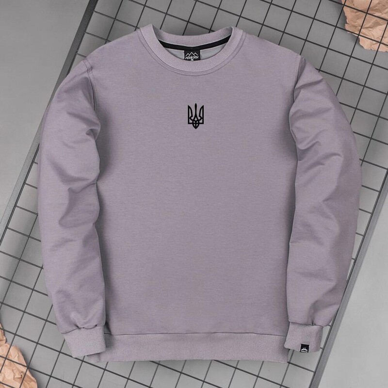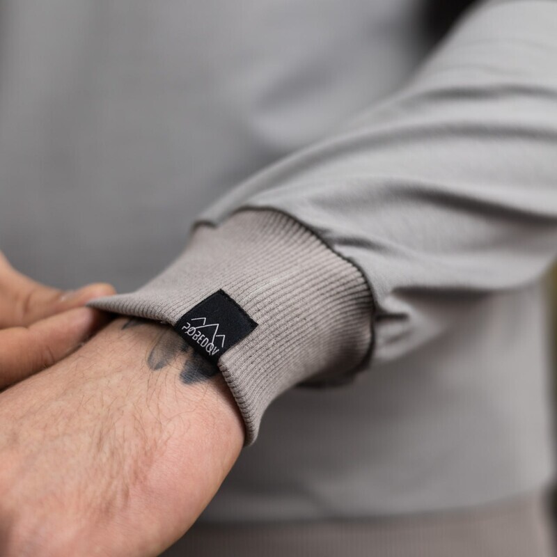 • Свитшот стального цвета Pobedov с черной наклейкой "Герб"
