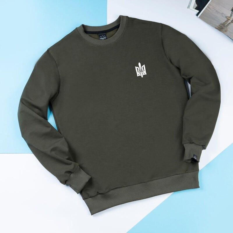 • Свитшот цвета хаки от Pobedov с белым лого "Тризуб Меч"