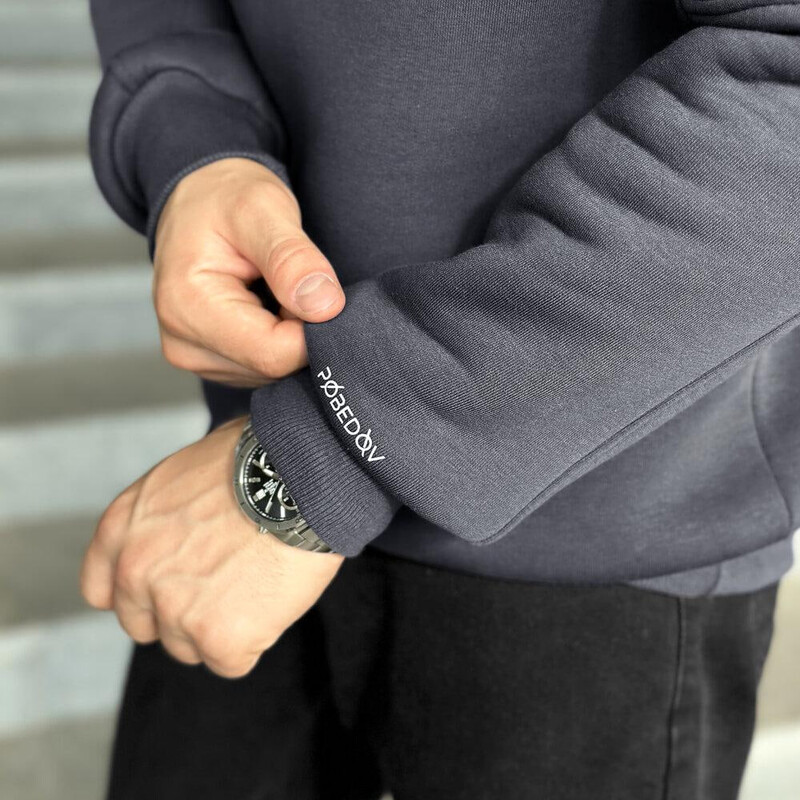 Базовый теплый свитшот Pobedov черный с вышитым гербом