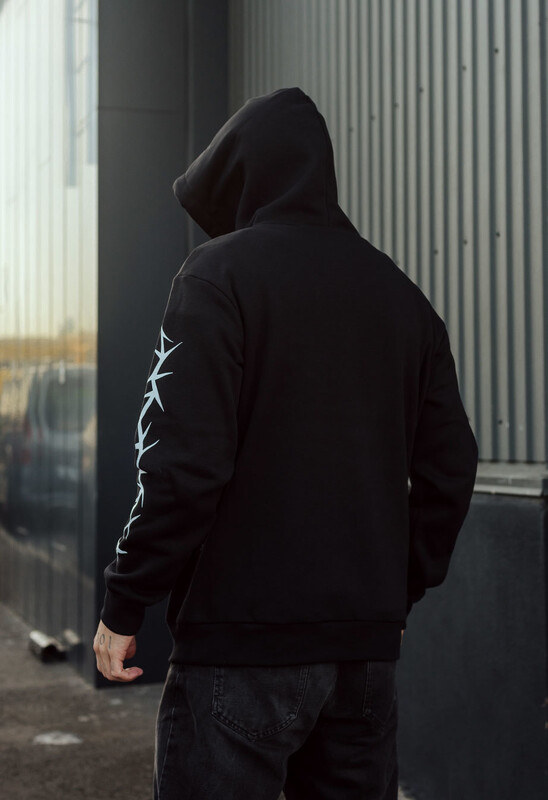 Утеплённое худи с заниженной линией плеча прекрасно подойдёт для создания повседневного образа.