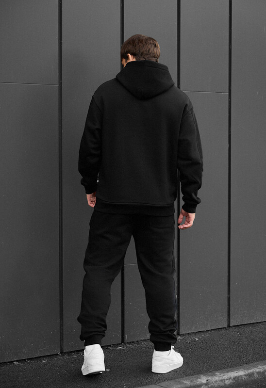 Обновите свой гардероб и оставайтесь в тепле с этим утеплённым спортивным костюмом в насыщенном чёрном цвете. Модель идеально подходит для осенне-зимнего сезона, помогая создать актуальный трендовый образ и гарантируя полный комфорт. Комплект изготовлен из качественного европейского 100% хлопка, утеплённого микрофлисом премиум-класса. Худи выполнено в свободном крое oversize, имеет большой карман-кенгуру, а ширина капюшона регулируется шнуром. Оригинальность модели подтверждает фирменная бирка, вшитая в боковой шов. Брюки оснащены эластичным поясом в рубчик со шнурком для надёжной и комфортной фиксации. Функциональность обеспечивают два прорезных кармана на молнии спереди и один накладной открытый карман сзади.