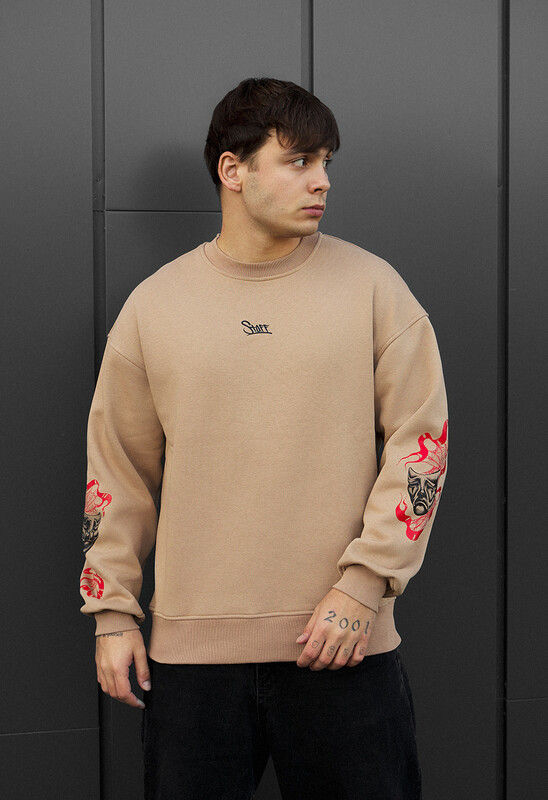 Тепло и простор: свитшот, ставший холстом для графики! Этот oversize свитшот в тёплом бежевом цвете — это идеальный элемент, который поможет создать яркий и динамичный образ, одновременно надёжно согревая в прохладное время. За премиальный комфорт и тепло отвечает качественный европейский 100% хлопок, утеплённый микрофлисом премиум-класса, дарящий ощущение тактильной мягкости. Дизайн модели акцентирован свободным кроем oversize и качественным принтом, стратегически размещённым на груди и рукавах, который придаёт изделию художественной выразительности. Фирменное качество и минимализм подтверждены биркой с логотипом бренда, вшитой в боковой шов.