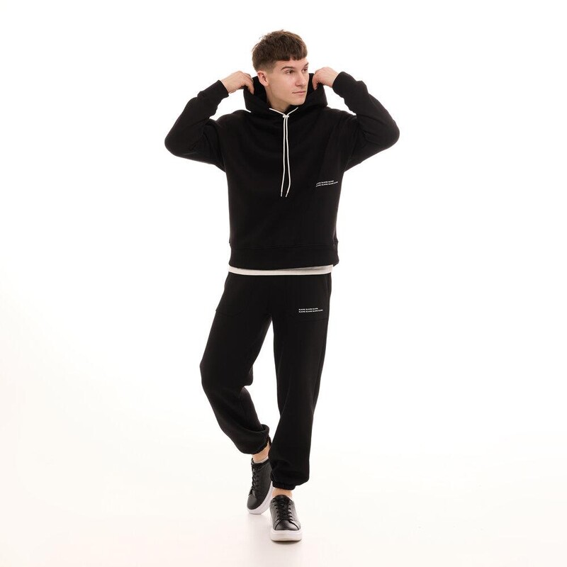 Чёрная классика, преображённая в функциональный шедевр! Этот базовый спортивный костюм PMF в безупречном чёрном цвете — это идеальное воплощение комфорта, тепла и современного стиля, созданное как универсальная зимняя броня для ежедневного ношения и активного отдыха. Мягкая трёхнитка с начёсом (80% хлопок) является невесомым источником тепла, который отлично сохраняет микроклимат, обеспечивая ощущение уюта. Свободная кофта со спущенными плечами и регулируемый капюшон дарят расслабленный силуэт, а брюки в свободном крое с регулируемым поясом и эластичными манжетами гарантируют полную свободу движений. Практичность подчёркивают накладные карманы, а стильные фирменные наклейки Pobedov на обоих элементах служат знаком качества и современной эстетики.