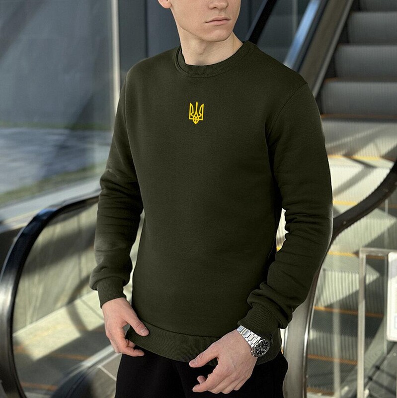 • Теплый свитшот Pobedov с желтым гербом. Цвет: темный хаки