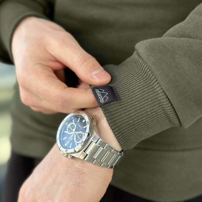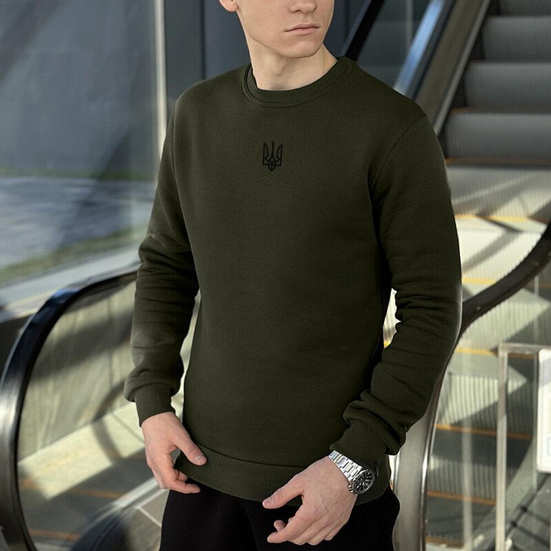 • Теплый свитшот Pobedov цвета темный хаки с черным гербом