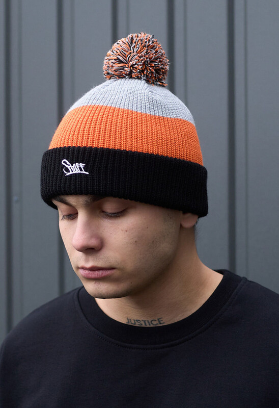 Шапка із щільної в'язки, широким відворотом та помпоном стане чудовим аксесуаром для створення крутого образу в холодну пору року.