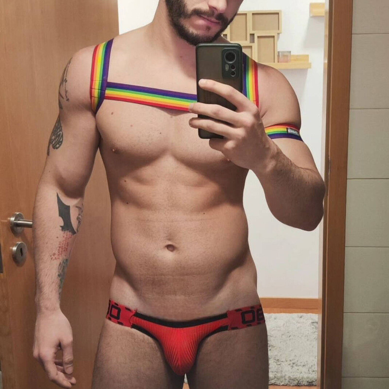 Фото - Трусы танга ORLVS черные с радужной резинкой - Men box