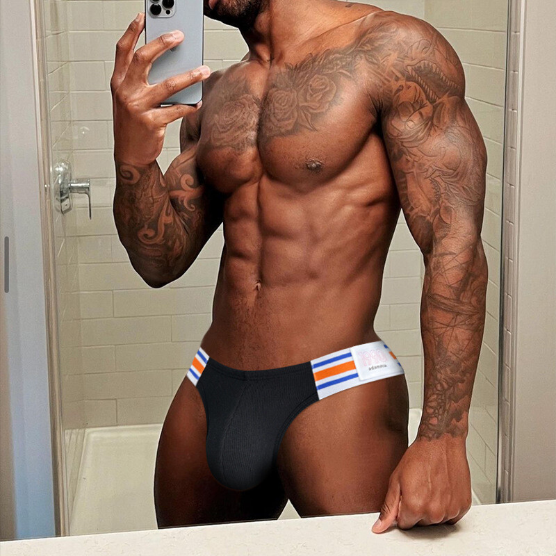 • Трусы танга черного цвета с яркими резинками от бренда Adannu