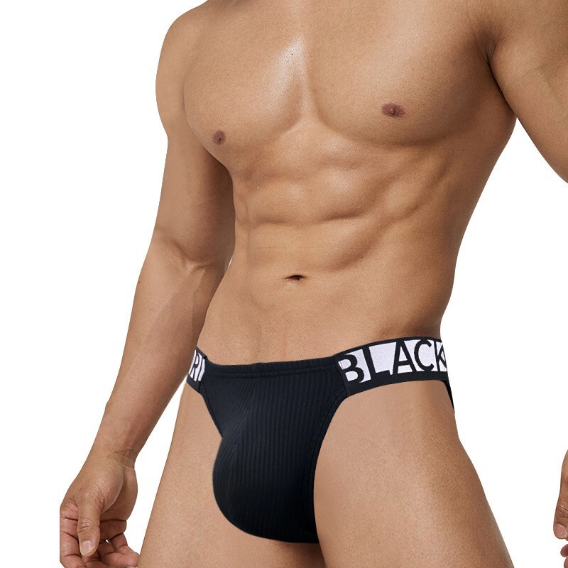 Фото - Сексуальные трусы для мужчин D.M. черно-белые стринги с эрекционным кольцом (O-ring) - Men box