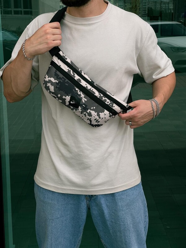 Фото - Камуфляжна поясна сумка з білим лого - Men box
